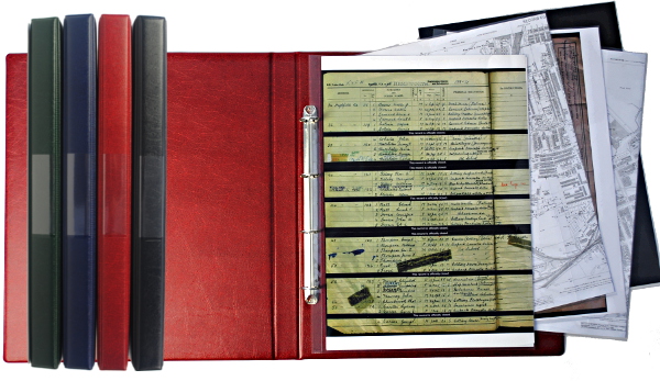 Our range of deluxe A3 Portrait Binders have sturdy covers from high quality padded PVC with a 4 ring binder that will hold up to 50 acid free certificate pockets. Ideal for certificate storage or keeping any precious awkward shaped documents or cuttings for presenting your family history research to someone else.